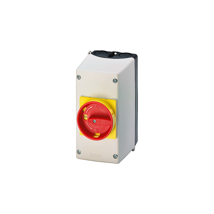 molded-plastic enclosure for surface mounting with emergency stop rotary operating mechanism 72 mm, with metric cable gland