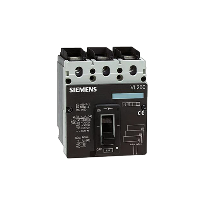 CIRCUIT-BREAKER VL 250L WITHOUT ELECTRONIC TRIP UNIT VERY HIGH BREAKING CAPACITY ICU= 100 KA / 415 V AC, 3-POLE IN= < 250 A, RATED CURRENT WITHOUT AUXILIARY RELEASE WITH SCREW CONNECTIONS FOR CONTACT UNIT AND OVERVOLTAGE RELEASE CIRCUIT-BREAKER VL 250L WITHOUT ELECTRONIC TRIP UNIT VERY HIGH BREAKING CAPACITY ICU= 100 KA / 415 V AC, 3-POLE IN= < 250 A, RATED CURRENT WITHOUT AUXILIARY RELEASE WITH SCREW CONNECTIONS FOR CONTACT UNIT AND OVERVOLTAGE RELEASE