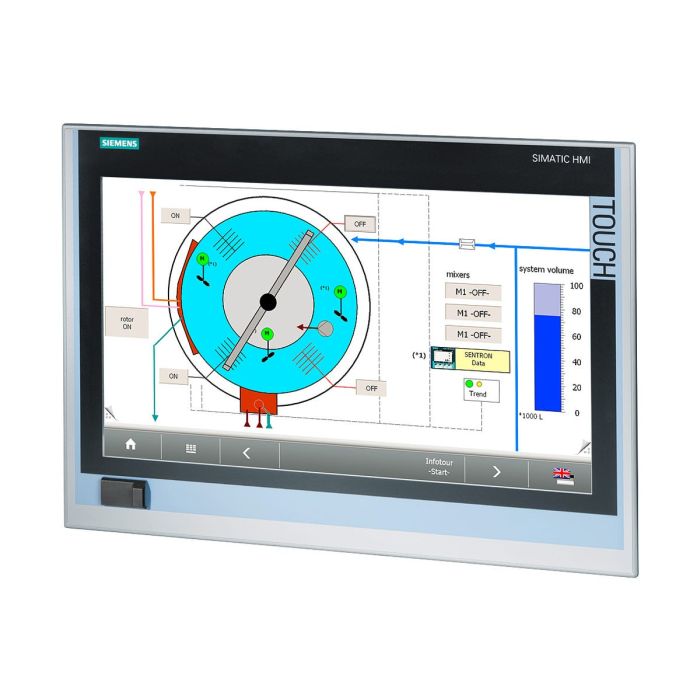 The SIMATIC IPC277E (NANOPANEL PC) is an advanced panel PC designed for industrial applications, featuring a sleek 19" touchscreen TFT display. This high-performance device ensures optimal connectivity with 2x 10/100/1000 Mbps Ethernet RJ45 ports, making it perfect for real-time data processing and communication in manufacturing environments.