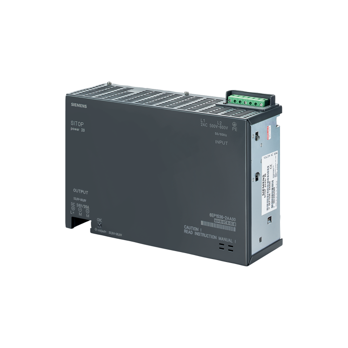 SITOP POWER 20 STABILIZED LOAD POWER SUPPLY INPUT: 500-620 V AC RATED VOLT. APPL. AREA: 420 - 682 V AC OUTPUT: 24 V DC/20A