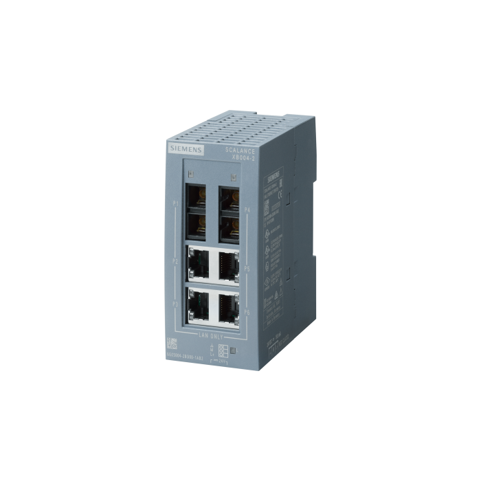 SCALANCE XB004-2 unmanaged Industrial Ethernet Switch for 10/100 Mbit/s; for setting up small star and line topologies; LED diagnostics, IP20, 24V DC power supply, with 4x 10/100 Mbit/s twisted pair ports with RJ45 sockets; 2x 100 Mbit/s multimode glass FOC port with SC socket; Manual available as a download SCALANCE XB004-2 unmanaged Industrial Ethernet Switch for 10/100 Mbit/s; for setting up small star and line topologies; LED diagnostics, IP20, 24V DC power supply, with 4x 10/100 Mbit/s twisted pair ports with RJ45 sockets; 2x 100 Mbit/s multimode glass FOC port with SC socket; Manual available as a download