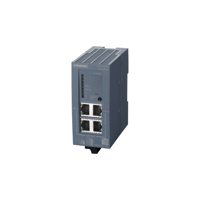SCALANCE X204RNA; redundant network access; 4x 100 Mbit/s RJ45 ports; LED diagnostics; error-signaling contact with set button; redundant power supply; network management; incl. electronic manual on CD-ROM, C-plug optional for HSR networks;