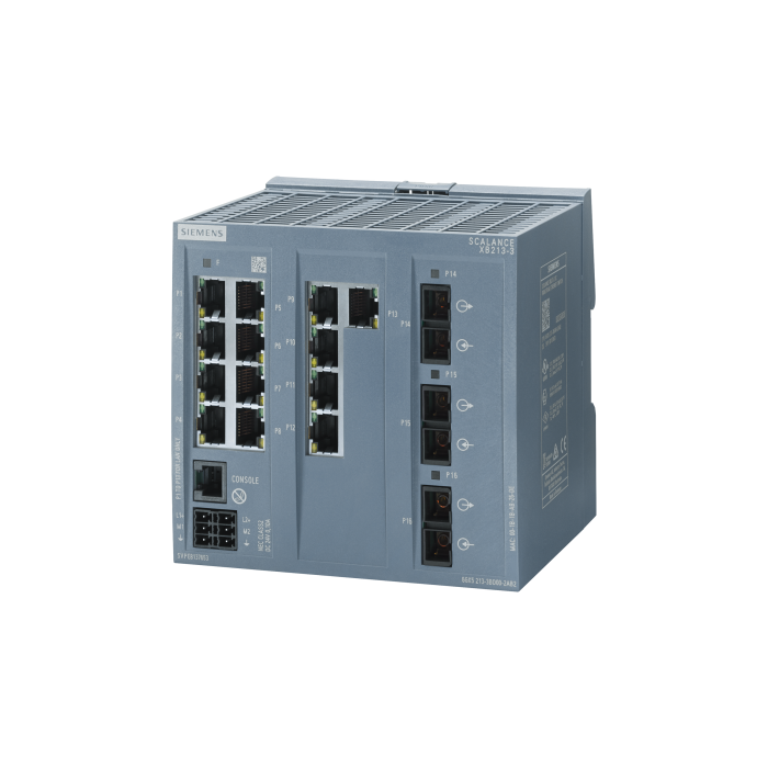 SCALANCE XB213-3 managed Layer 2 IE switch 13x 10/100 Mbps RJ45 ports, 3x MM FO SC port 1x console port, diagnostics LED, redundant power supply, IEC 62443-4-2 certified; temperature range 0 -¦C to +60 -¦C; mounting onto standard rail; default PROFINET