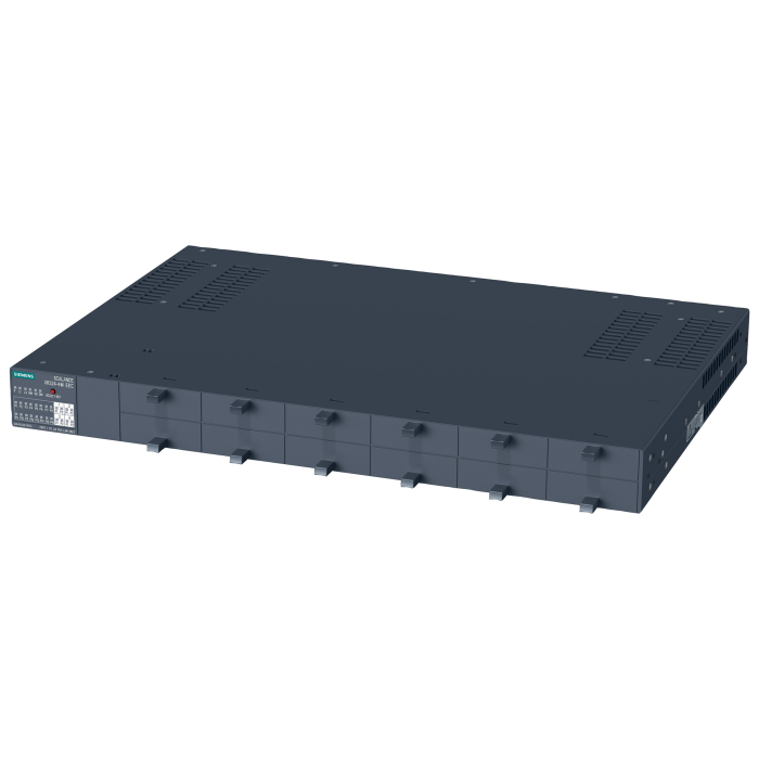 SCALANCE XR324-4M EEC; managed IE switch, 19 rack; 16x 10/100/1000 Mbit/s for RJ45 ports electrical; 4x 100/1000 Mbit/s for 2-port media modules, electrical or optical; LED diagnostics; error signaling contact; select/set pushbutton, PROFINET IO device, network management, integrated redundancy manager; power supply 1x 230 V AC; Ports in the front.