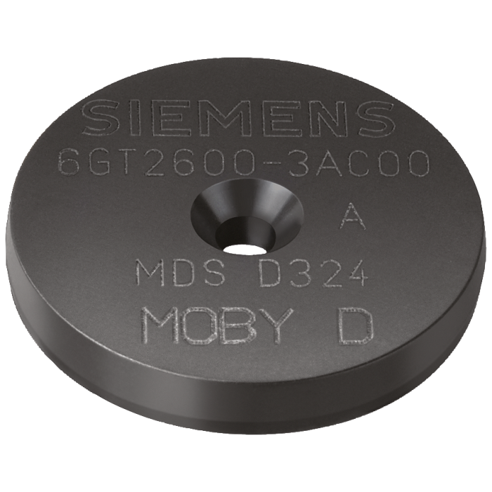 Transponder MDS D324 for RF200/RF300 ISO/MOBY D button ISO 15693, Chip type INFINEON SRF 55V10P, 992-byte user memory; 27x 4 mm (DxH); Minimum ordering quantity 20 units