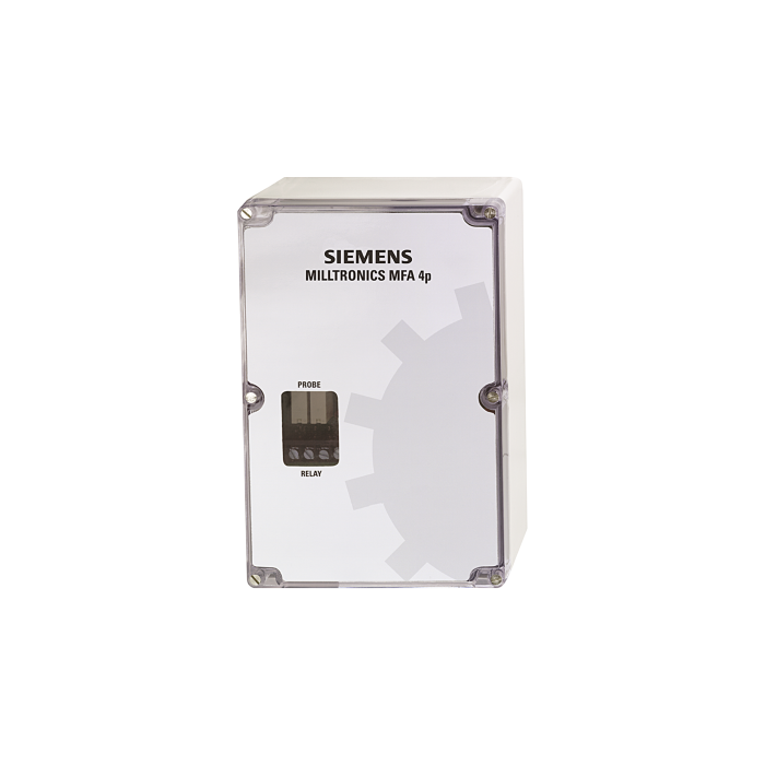 Milltronics MFA 4p Motion failure alarm controller: set-point alarm controller, for use with MSP motion probes. Enclosure: NEMA 4X, Polycarbonate enclosure Input voltage: 100/115/200/230 VAC, 50/60 Hz, switch selectable. Speed detection version: standard, underspeed (U/S) or overspeed (O/S), switch selectable Approvals: CE,RCM,EAC,KCC CSA US/C, FM
